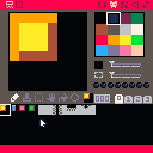 Die Lösung: Ansprüche zurückschrauben und eine kleine Zeitreise in vergangene Jahrzehnte machen. Denn damals war alles noch viel einfacher™. Das Programm PICO-8 ist eine wunderbare Zeitmaschine für solche Bestrebungen – es emuliert gewisserweise eine Fantasie-Spielekonsole die es nie gegeben hat. So gibt es einige Beschränkungen: der Bildschirm ist nur 128x128 Pixel groß, es gibt nur 16 festgelegte Farben und der Code darf aus maximal 8192 Tokens bestehen. Denn (Platz)not macht erfinderisch!